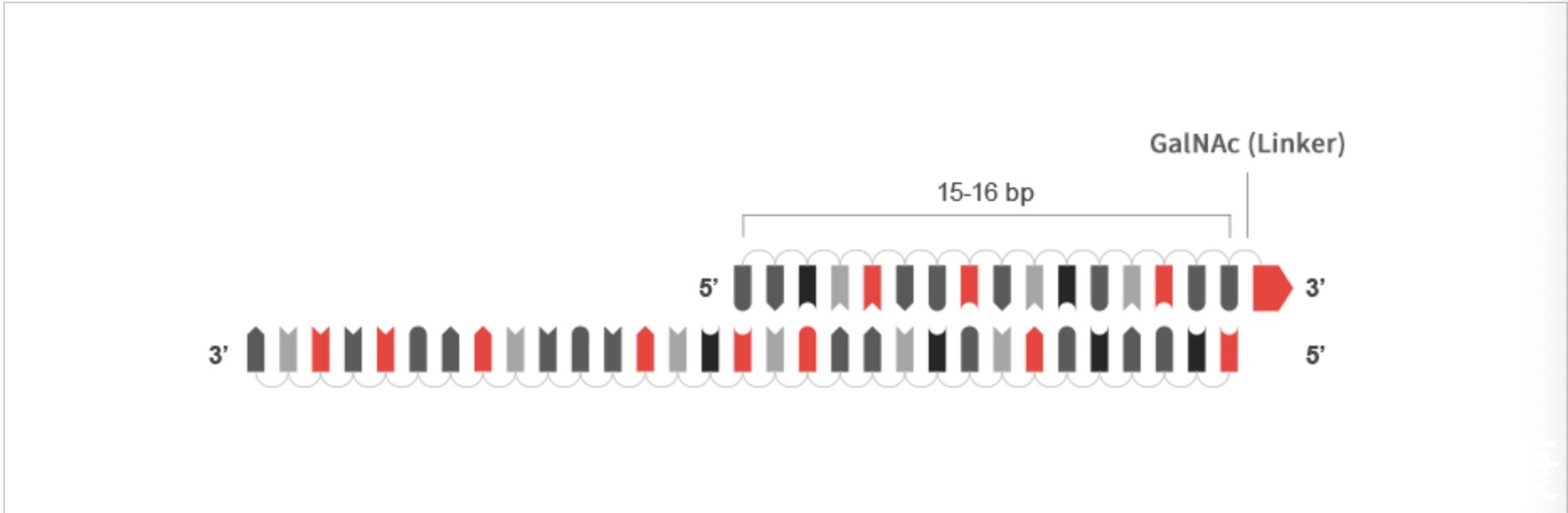 其他几种 GalNAc 偶联物,正处在治疗多种疾病的高级临床试验中。GalNAc 偶联物是附着在siRNA末端的小碳水化合物部分。它通过与去唾液酸糖蛋白受体(ASGPR)的高亲和力和特异性结合,使肝脏肝细胞能够摄取siRNA。OliX公司表示,为了进一步扩大新药研发管道,OliX Pharmaceuticals最近还获得了GalNAc平台来治疗各种肝病包括肝纤维化和非酒精性脂肪性肝炎的候选药物。